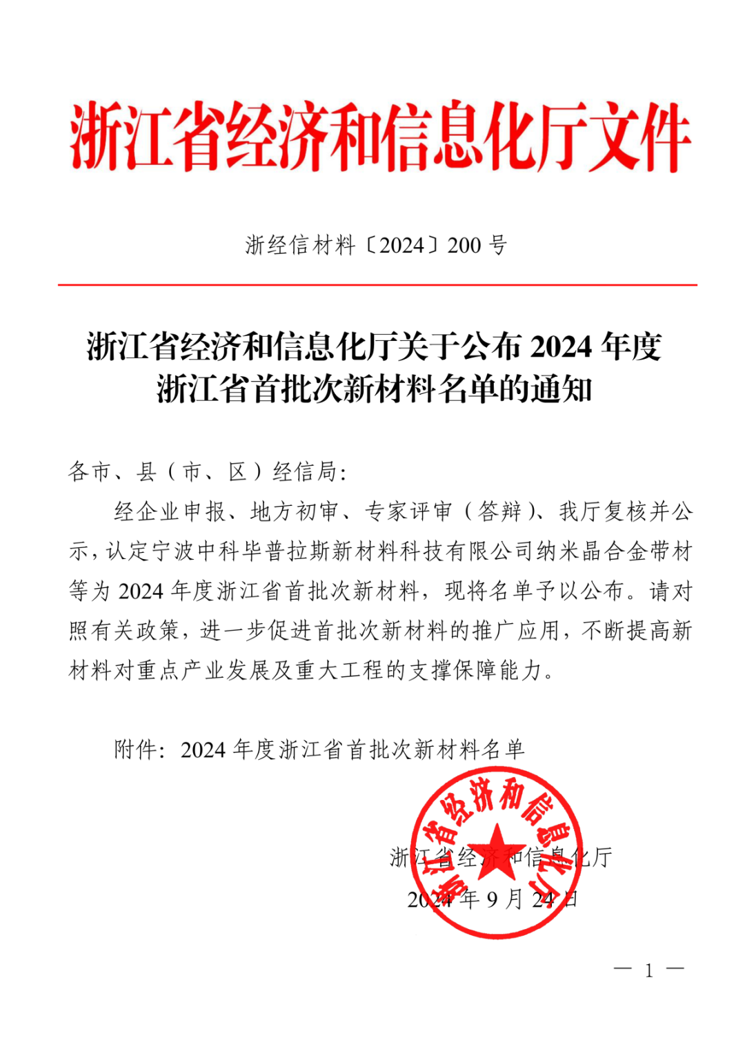 近日,浙江省經(jīng)濟(jì)和信息化廳公布了《2024年度浙江省首批次新材料認(rèn)定結(jié)果》名單